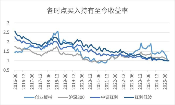 以红利为例,历史数据验证表明,无论是在市场牛市、熊市还是震荡的不同位置开始定投,长期视角下红利板块的定投策略均表现优异,择时对收益的影响较小。
